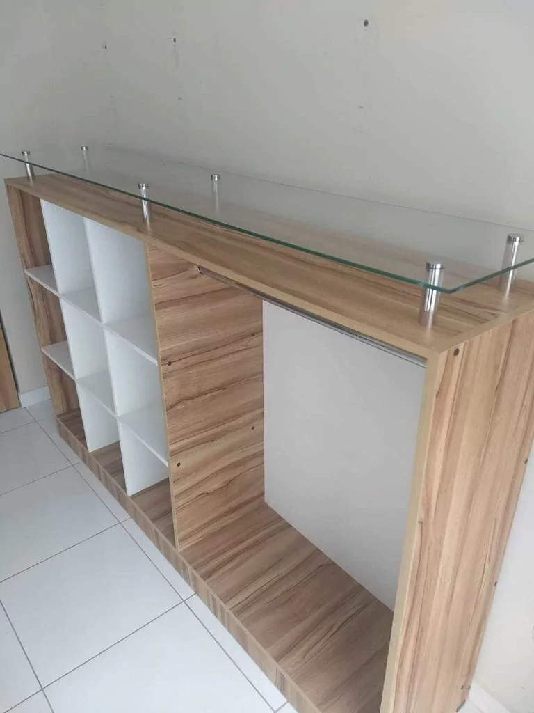 Disponível no material MDF (Chapa de fibra de madeira de média densidade, material de alta resistência cujas fibras possibilitam trabalhos industriais com acabamentos mais precisos). Em todos nossos balcões utilizamos parafusos reforçados e corrediças telescópicas.